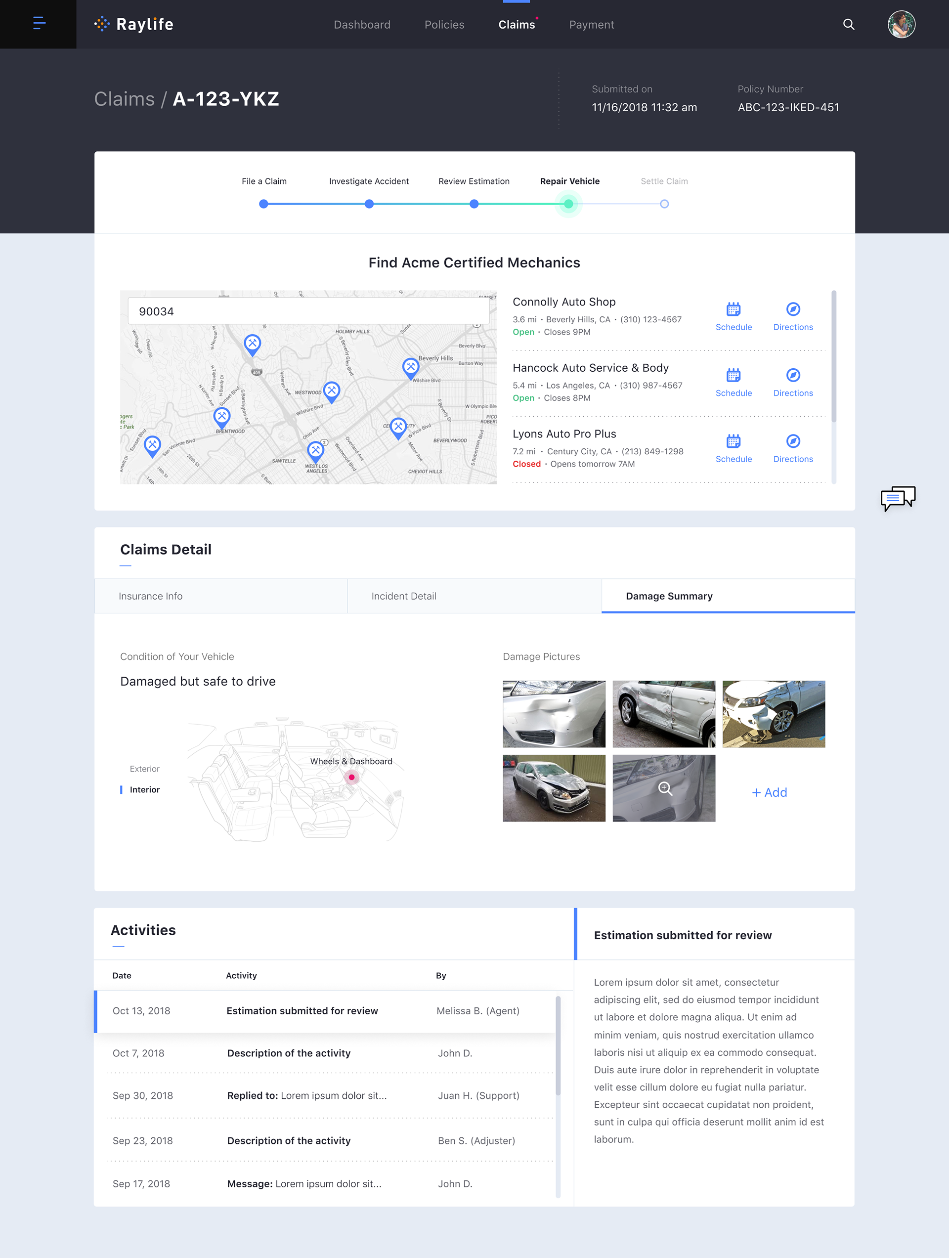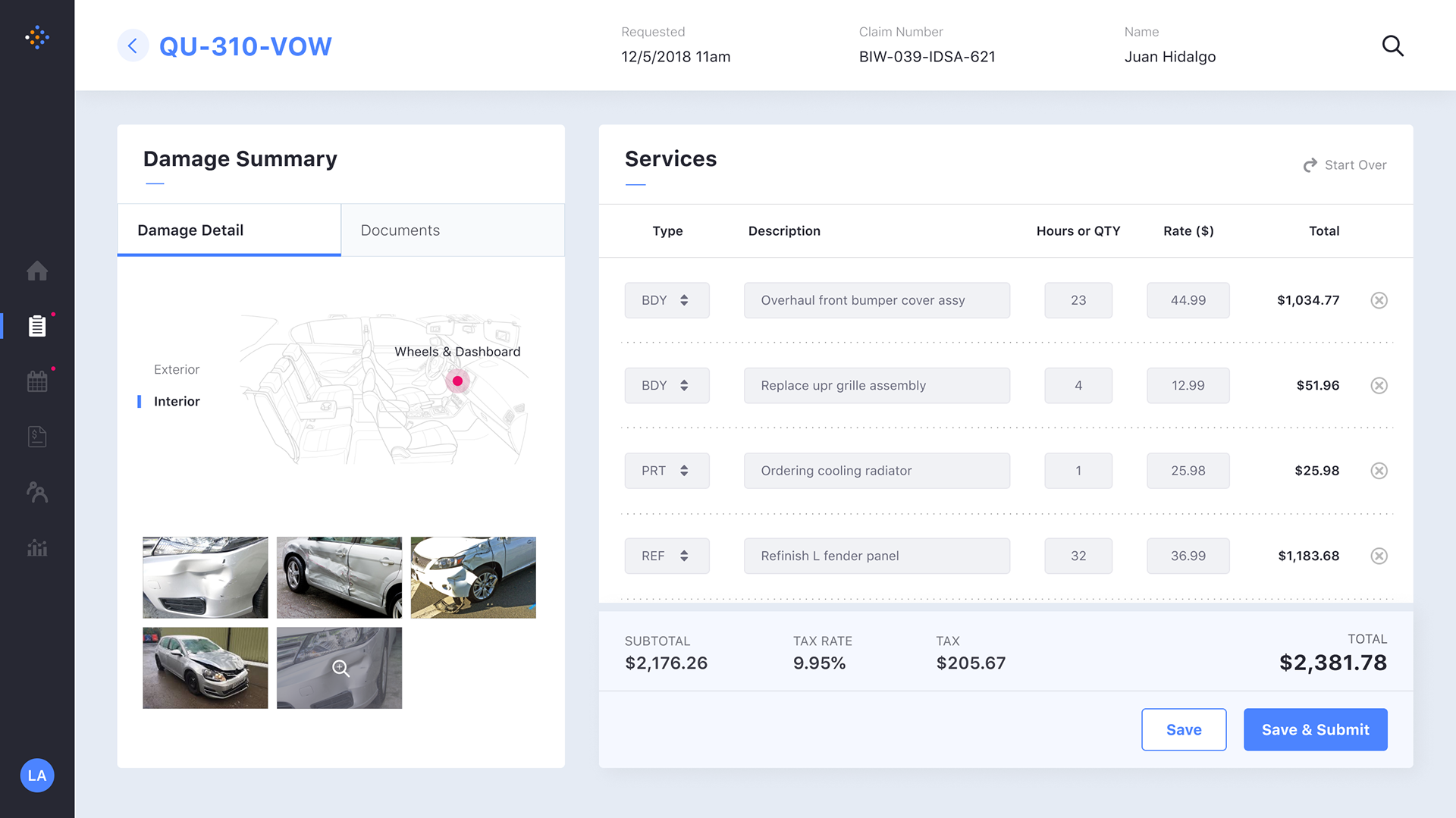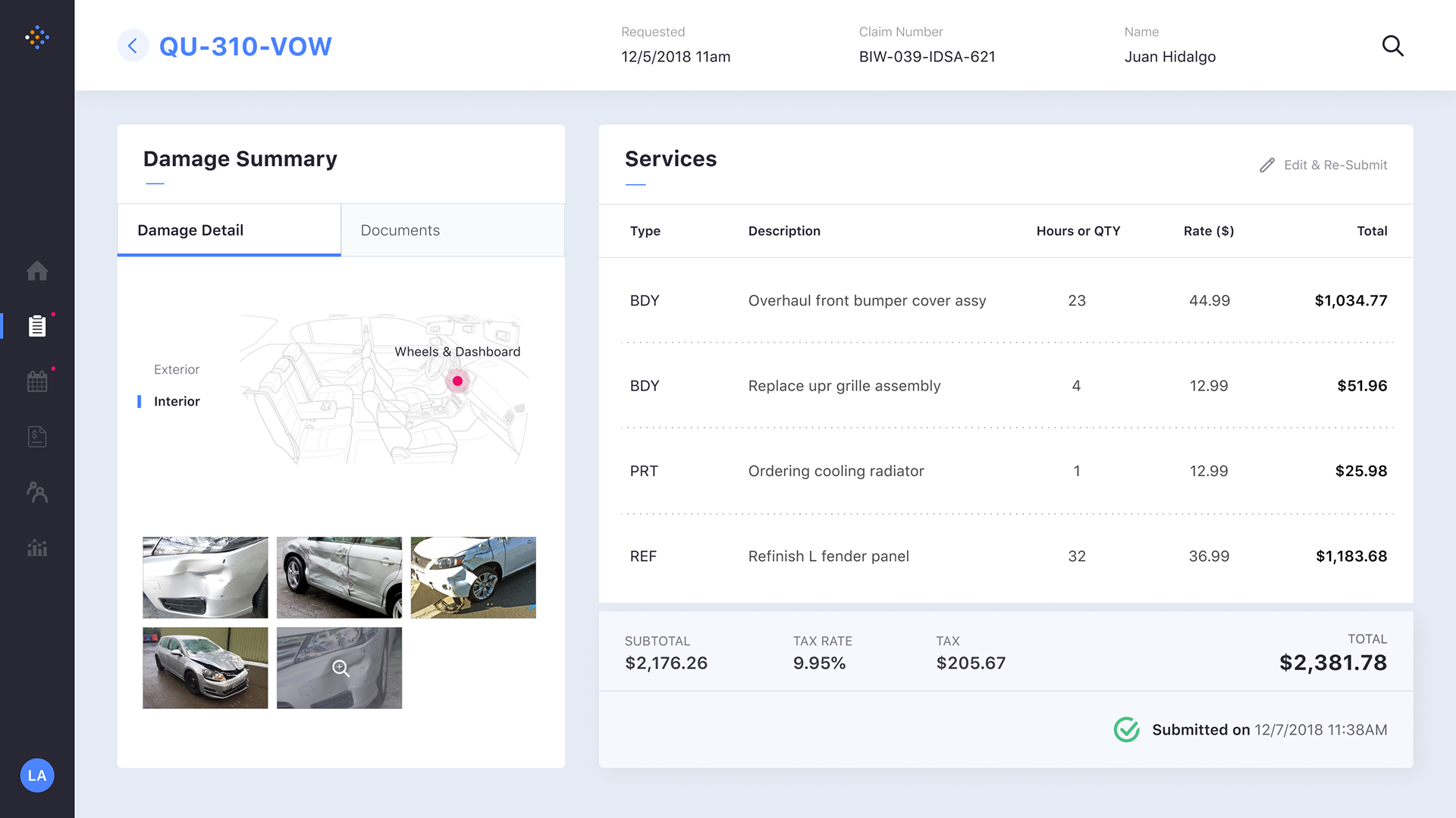 Filing a Claim: Damage Detail