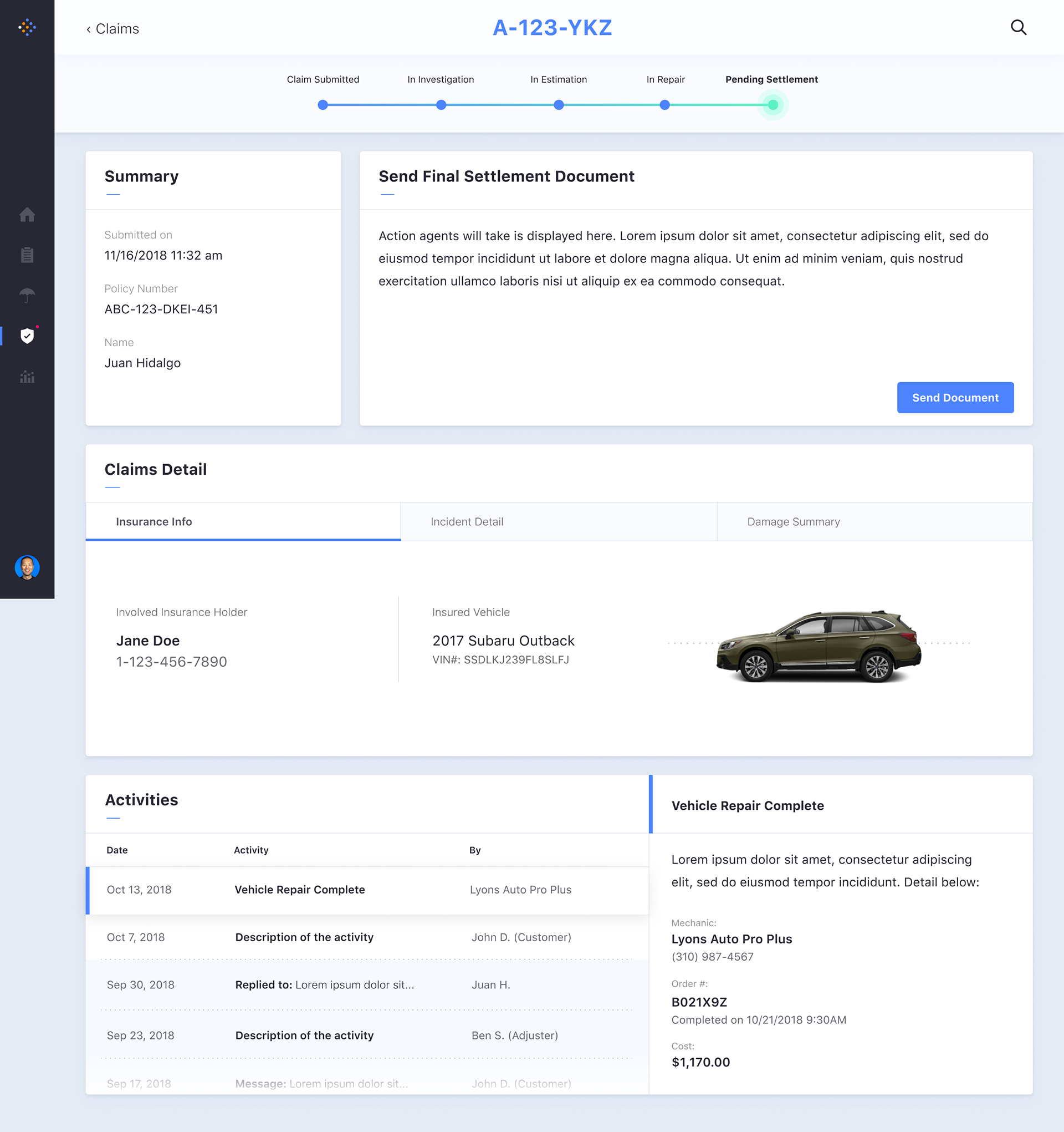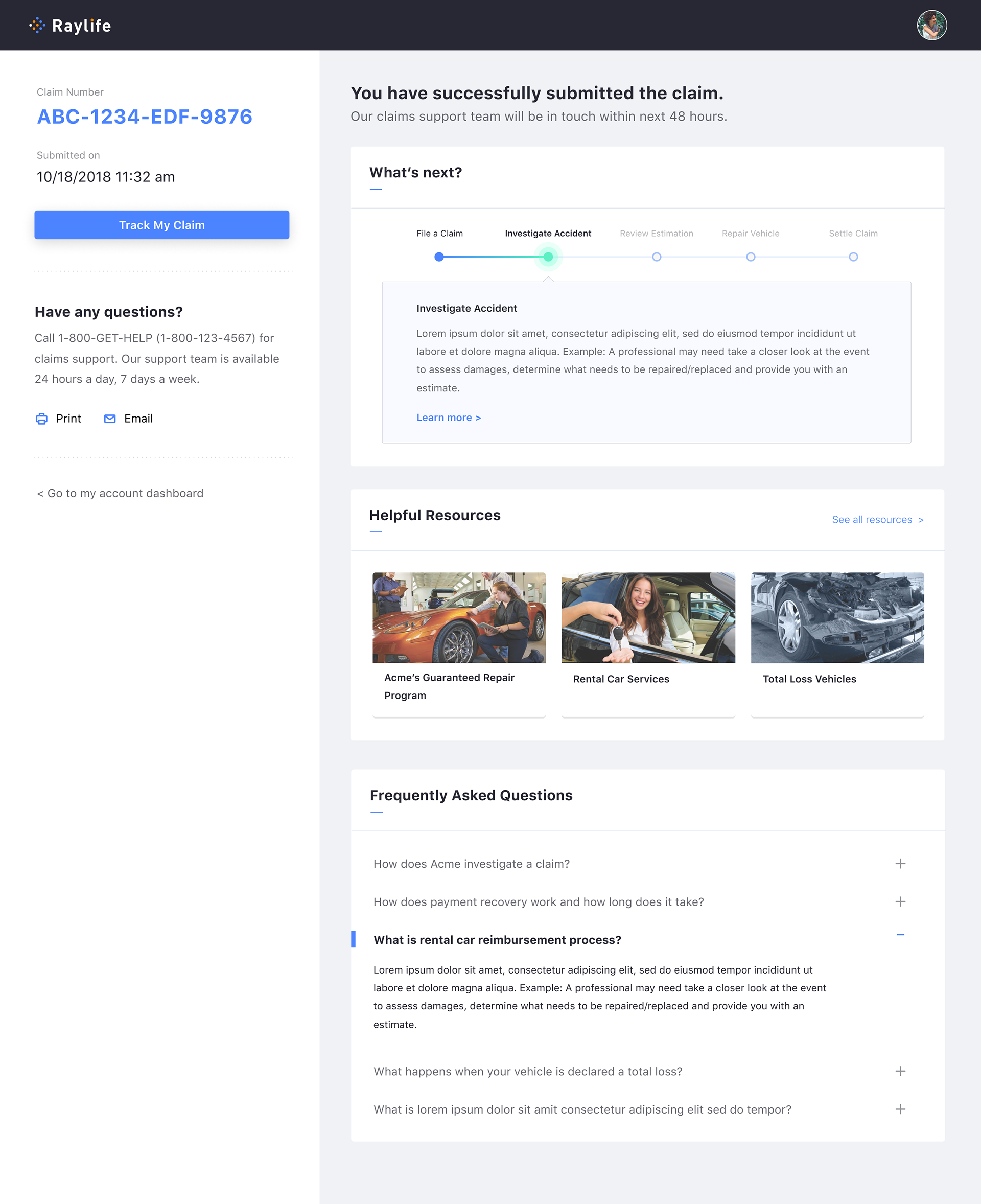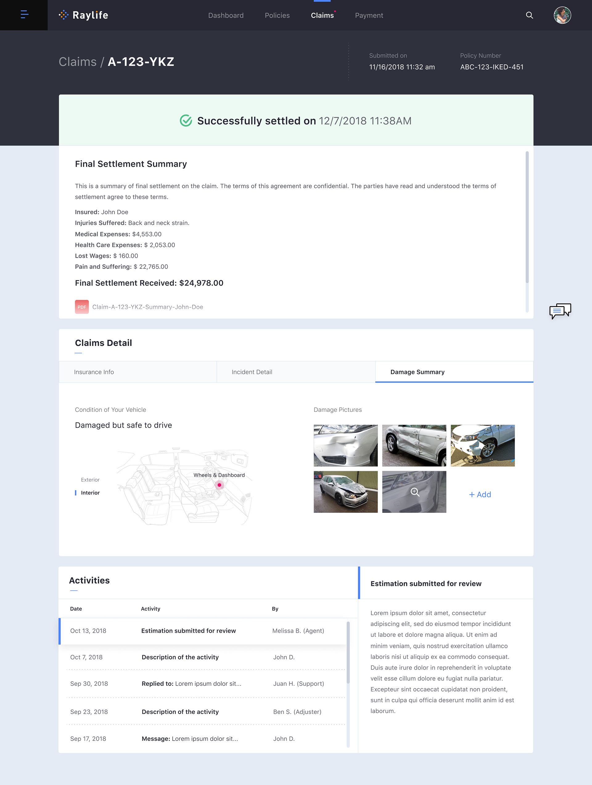 Customer Dashboard: Claim Settled