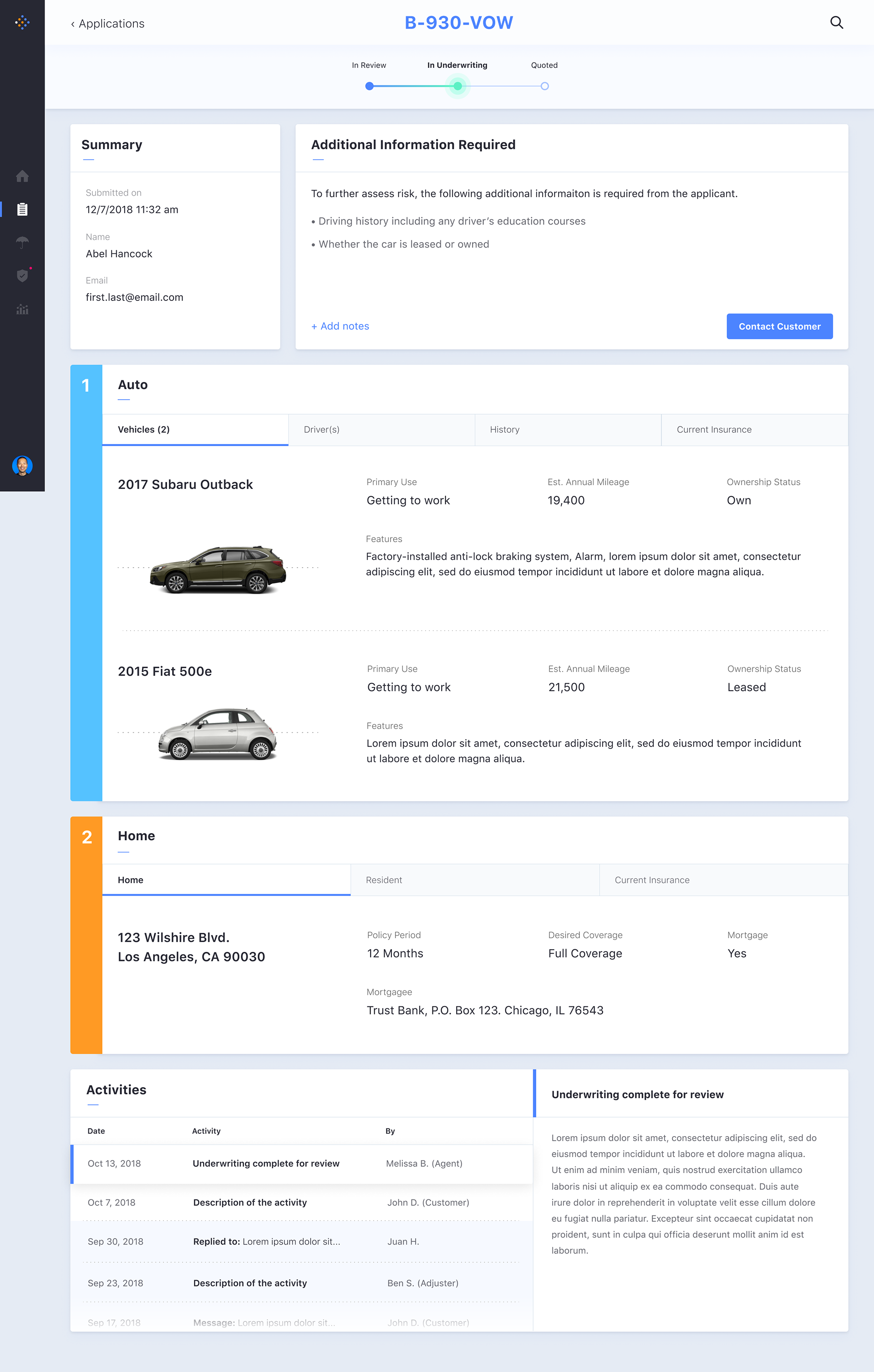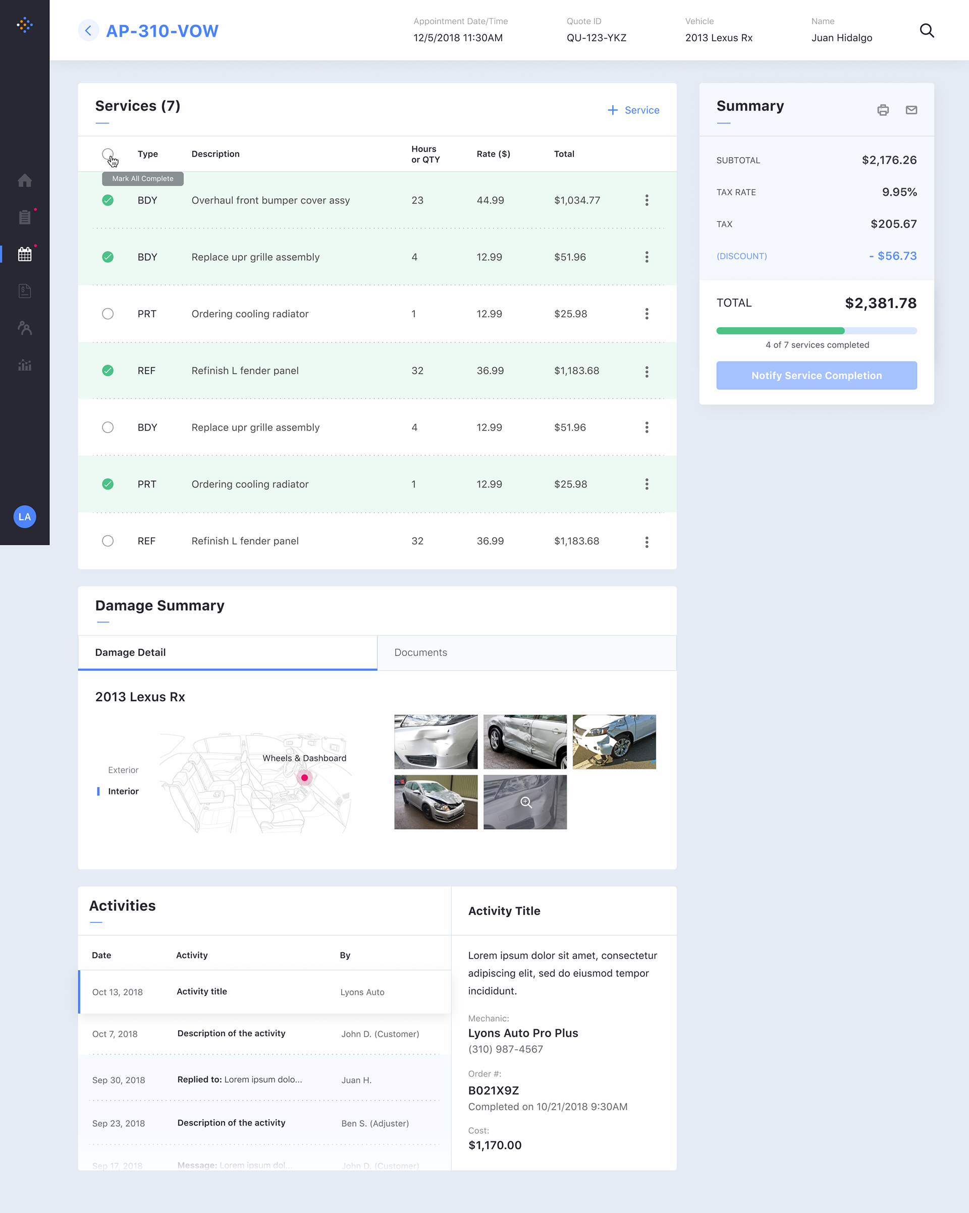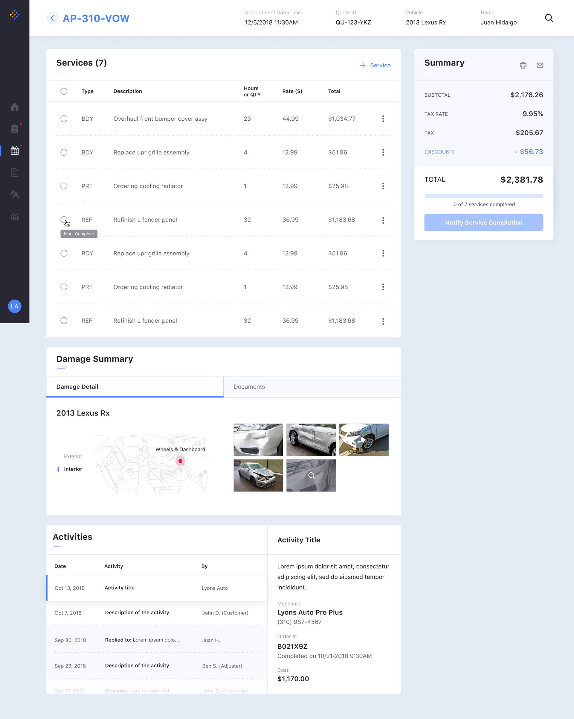 While primary user persona is an agent, we have also designed for other secondary personas: Customers and Vendors (mechanics).